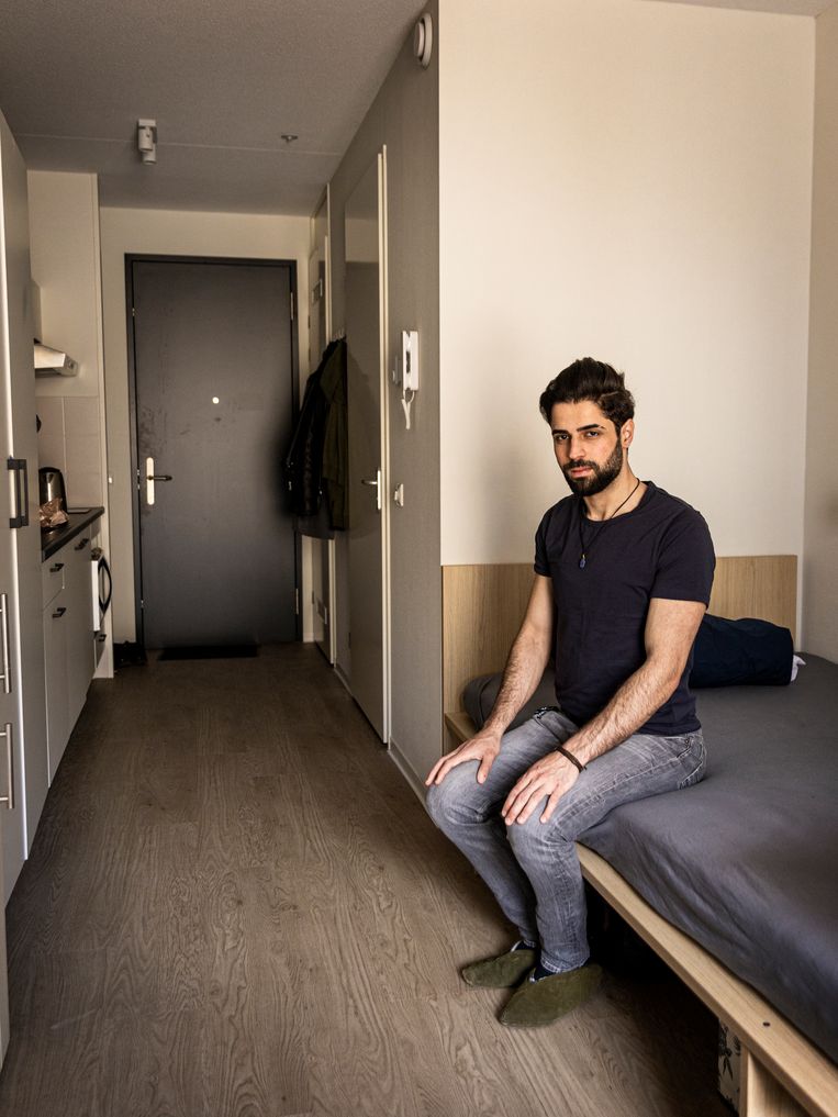 Net als Amjad Alkanbar wonen er nog negen statushouder in het peperdure Rotterdamse studentencomplex. Hij woont alleen, tijd voor een baantje heeft hij niet. Alkanbar doet een taalcursus, zodat hij in september kan beginnen met een opleiding communicatiewetenschappen aan de Erasmus Universiteit. Voor VluchtelingenWerk werkt hij als tolk, maar dat is onbetaald vrijwilligerswerk. ‘Ik vind het echt moeilijk om rond te komen. Ik weet op dit moment nog niet of het genoeg is.’